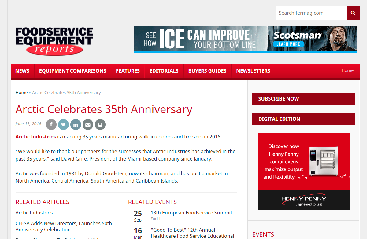 Arctic celebrates 35th Anniversary- Foodservice Equipment Reports